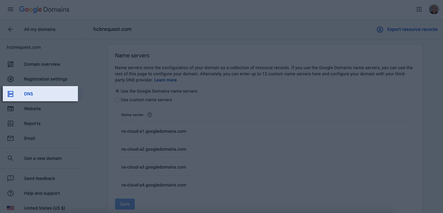 Dans ce cas-ci, nous utilisons Google Domains, mais les étapes sont similaires pour les autres fournisseurs de noms de domaine.